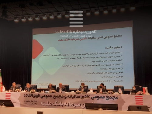 به گزارش روابط عمومی تامین سرمایه بانک ملت، مجمع عمومی عادی سالیانه شرکت تامین سرمایه بانک ملت صبح امروز با حضور 89.5 درصد سهامداران در محل مرکز همایشهای بینالمللی دانشگاه الزهرا برگزار شد. پس از قرائت گزارش عملکرد هیاتمدیره در سال مالی منتهی به اسفند 1400 و همچنین استماع گزارش حسابرس و بازرس قانونی، صورت های مالی تصویب و به پیشنهاد هیات مدیره مقرر شد از 340 ریال سود محقق شده هر سهم 35 ریال معادل 10 درصد برای هر سهم توزیع و مابقی برای افزایش سرمایه منظور شود. در ادامه نیر مجمع عمومی فوقالعاده شرکت با دستور افزایش سرمایه برگزار و با توجه به صدور مجوز توسط سازمان بورس، افزایش سرمایه 35 درصدی از سود انباشته مورد موافقت سهامداران قرار گرفت. بر این اساس افزایش سرمایه «تملت» از 16 هزار میلیارد ریال به 21.6 هزار میلیارد ریال، مورد تصویب مجمع قرار گرفت.