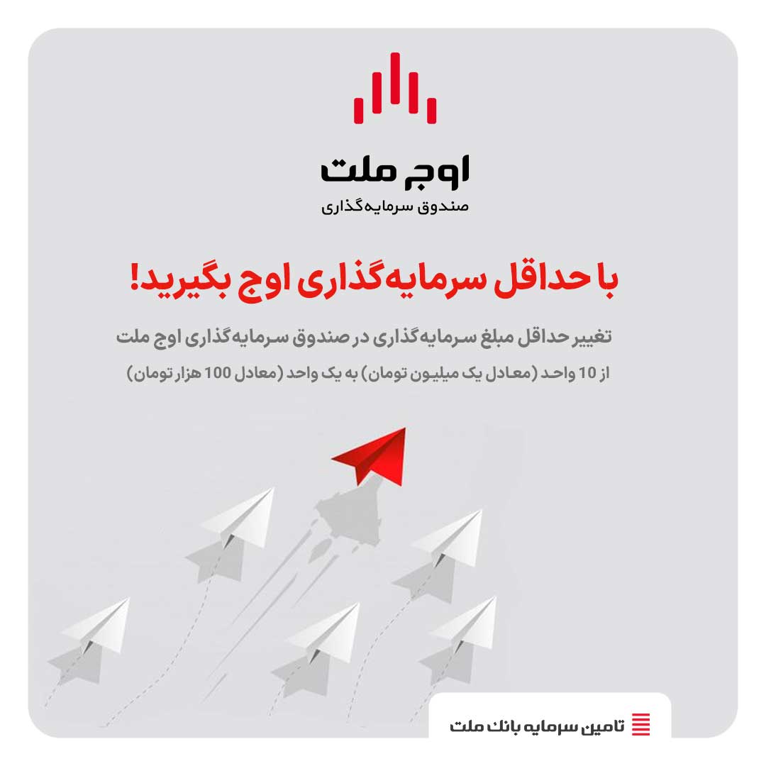 صندوق سرمایهگذاری «اوج ملت» به عنوان بزرگترین صندوق با درآمد ثابت تحت مدیریت تامین سرمایه بانک ملت، مفتخر است که میزبان سرمایهگذاران با هر میزان مبلغ سرمایهگذاری باشد.به گزارش روابط عمومی تامین سرمایه بانک ملت، حداقل سرمایهگذاری در صندوق سرمایهگذاری اوج ملت از 10 واحد (معادل یک میلیون تومان) به یک واحد (معادل 100 هزار تومان) تغییر یافت. بنابراین سرمایهگذاران میتوانند از مبلغ 100 هزارتومان تا هر مبلغی که تمایل داشتهباشند در صندوق مذکور سرمایهگذاری نموده و سود مطمئن و بدون ریسک دریافت نمایند.صندوق اوج ملت به عنوان یکی از ده صندوق برتر با درآمد ثابت، با حدود 200 هزار سرمایهگذار، معتبرترین و نقدشوندهترین صندوق سرمایهگذاری کشور است که علاوه بر پرداخت سود بدون نرخ شکست و معاف از مالیات، امکان اخذ گواهی تمکن مالی و امکان توثیق واحدهای سرمایهگذاری جهت دریافت تسهیلات بانکی را نیز برای سرمایهگذاران فراهم مینماید.گفتنی است صندوق با درآمد ثابت اوج ملت، همراه با برخورداری از ضمانت نقدشوندگی بانک ملت، سود %23.2 اسمی (معادل %25.83 موثر) را به سرمایهگذاران پرداخت مینماید.برای شروع سفر به دنیای جذاب سرمایهگذاری، با ثبت نام در سامانه فراسود ملت به صورت غیرحضوری و یا با مراجعه به شعب بانک ملت در سراسر کشور به صورت حضوری اقدام نمایید.