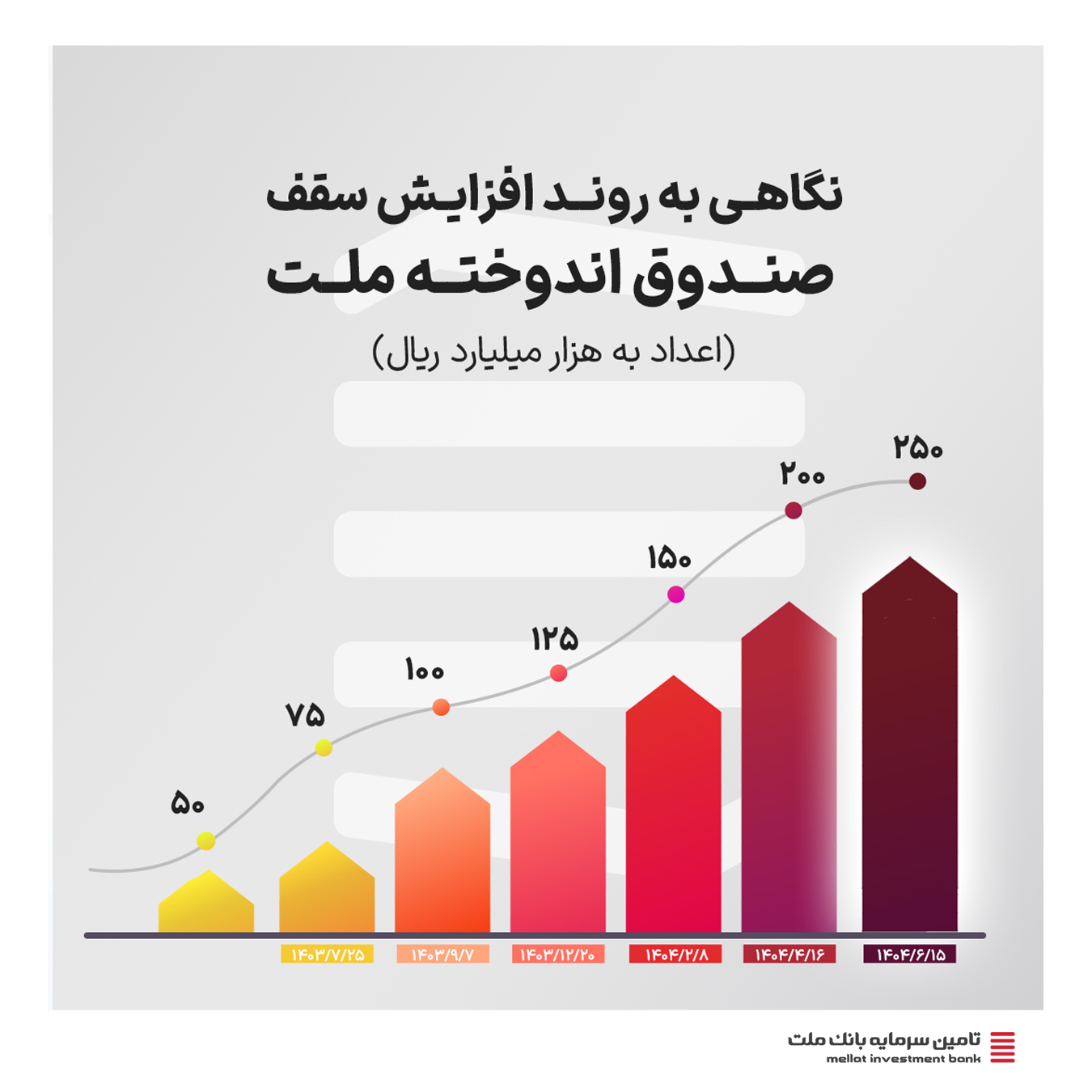 به گزارش روابط عمومی شرکت تامین سرمایه بانک ملت، سقف صندوق سرمایهگذاری اندوخته ملت از 200 هزار میلیارد ریال به 250 هزار میلیارد ریال افزایش پیدا کرد.صندوق سرمایهگذاری بادرآمد ثابت اندوخته ملت، تحت مدیریت شرکت تأمین سرمایه بانک ملت، توانست در کمتر از یک سال برای ششمین بار سقف سرمایهگذاری خود را افزایش دهد و از ۲۰۰ هزار میلیارد ریال به ۲۵۰ هزار میلیارد ریال برسد.این افزایش سقف در حالی رقم میخورد که ارزش خالص داراییهای صندوق اندوخته ملت طی یک سال گذشته بیش از 500 درصد رشد داشته و از 33 هزار میلیارد ریال در شهریور ماه 1403 به بیش از 200 هزار میلیارد ریال در شهریور 1404 رسیده است. چنین دستاوردی نشاندهنده اعتماد گسترده سرمایهگذاران و مدیریت حرفهای منابع توسط مدیران صندوق است.مسیر افزایش سقف اندوخته ملت در یک سال گذشته به ترتیب شامل: