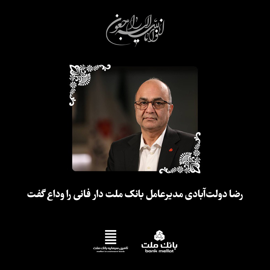 مرحوم رضا دولتآبادی، مدیرعامل و عضو هیئتمدیره بانک ملت، سوابق درخشانی در عرصه مدیریتی مالی و اقتصادی کشور در کارنامه خود ثبت کرد. مدیرعاملی بانک تجارت، معاونت مدیرعامل بانک تجارت، عضویت در هیئتمدیره بانک تجارت، مدیریت امور اعتباری بانک تجارت، عضویت غیرموظفی و ریاست هیئتمدیره شرکت لیزینگ ایران، عضویت غیرموظفی و نایبرئیسی هیئتمدیره شرکت پارسمینو، عضویت غیرموظفی هیئتمدیره شرکت تدبیرگران، عضویت غیرموظفی هیئتمدیره شرکت رسا و عضویت غیرموظفی هیئتمدیره شرکت سرمایهگذاری ملی ایران از جمله سوابق مرحوم دولت آبادی است.شرکت تامین سرمایه بانک ملت این ضایعه اسفبار را به خانواده محترم آن فقید سعید، همکاران در شرکت تامین سرمایه بانک ملت و بانک ملت و نظام بانکى کشور صمیمانه تسلیت مىگوید و براى روح ایشان آرامش و رحمت الهى و براى بازماندگان صبر و اجر مسألت مىنماید.