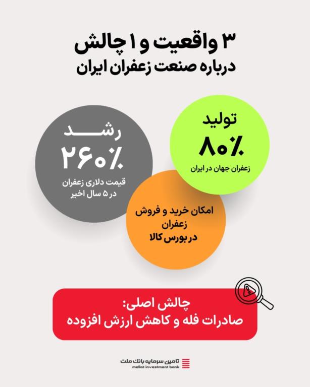 به گزارش روابط عمومی شرکت تأمین سرمایه بانک ملت به نقل از معاونت سرمایهگذاری، بررسیهای تازه از بازار جهانی زعفران در شهریور ۱۴۰۴ نشان میدهد «طلای سرخ ایران» در حال تجربه مرحلهای تازه از رشد قیمتی، تنوع تجاری و ظرفیتهای سرمایهگذاری در بازار سرمایه است.